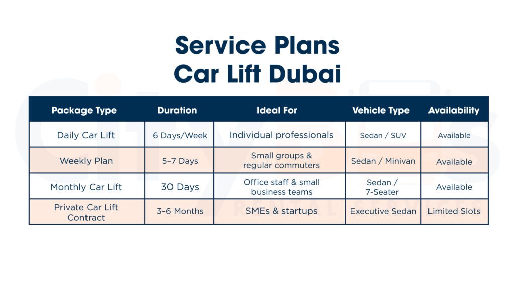 Daily, weekly, and monthly car lift packages for individuals & teams