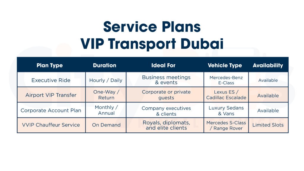 Hourly, daily, or long-term VIP hire contracts